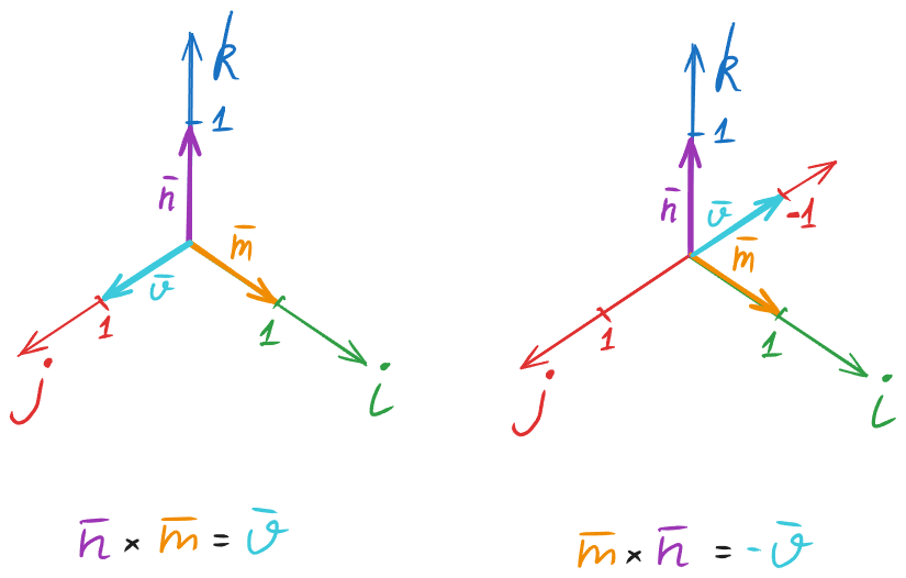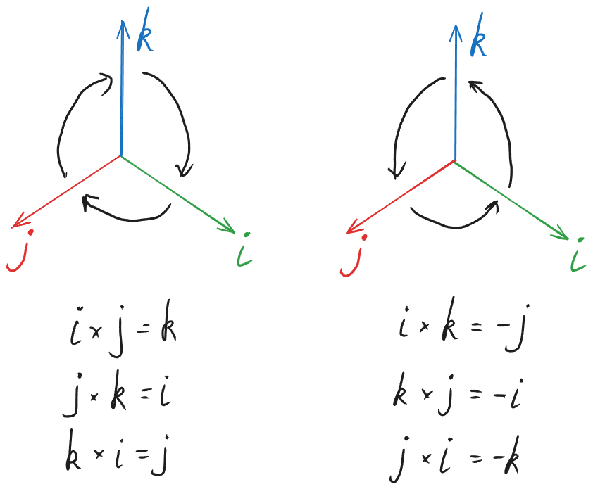 Добуток двох векторів (векторний добуток, не скалярний!) у тривимірному просторі завжди даватиме в результаті третій вектор, перпендикулярний до попередніх двох: